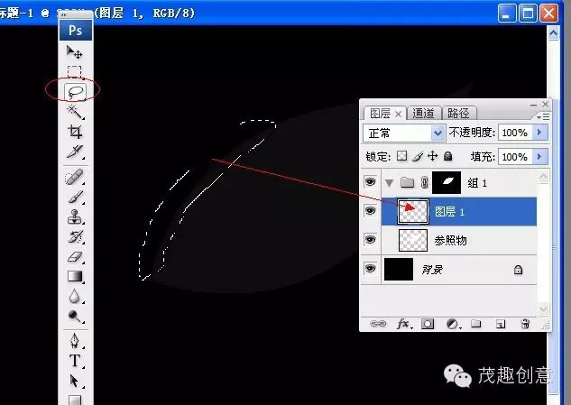 ►转换成选区后,为这个形状新建一个组,