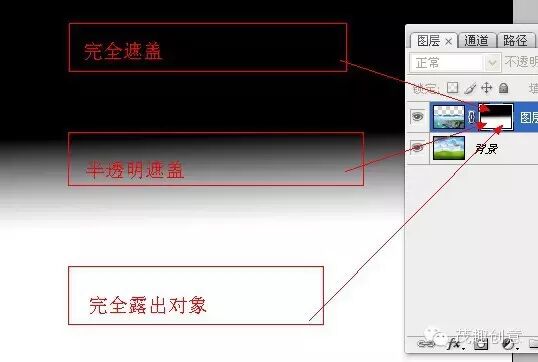 在蒙版中的黑色就是蒙住当前图层的内容,显示当前图层下面的层的内容来,蒙版中的白色则是显示当前层的内容。蒙版中的灰色则是半透明状,前图层下面的层的内容则若隐若现