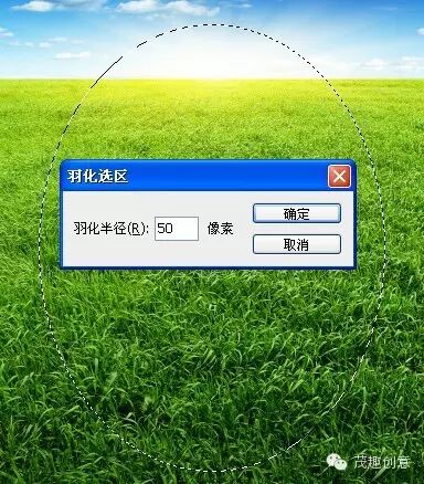 ►在图层上用选区工具画出想要的形状,羽化: