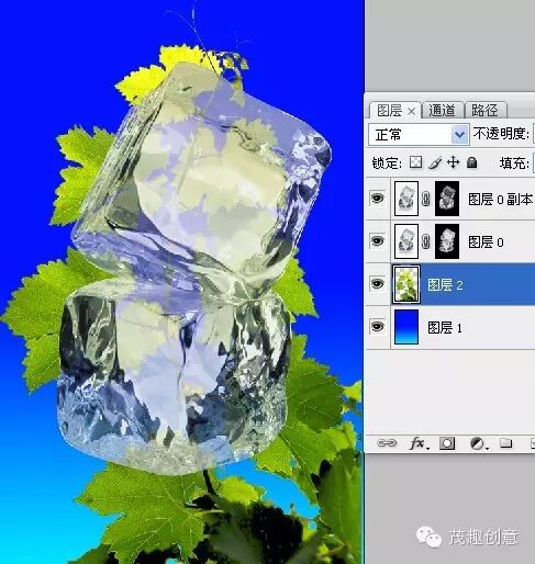 ►为了观察冰块是否被扣出,我们在冰块下面弄个背景,来看看效果: