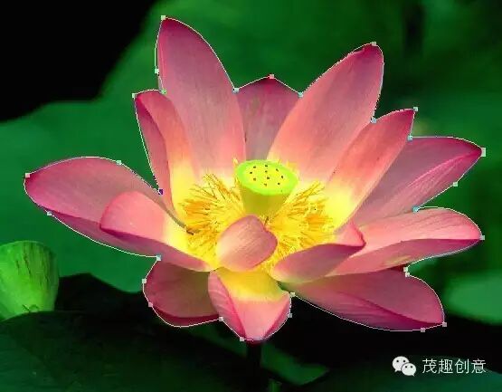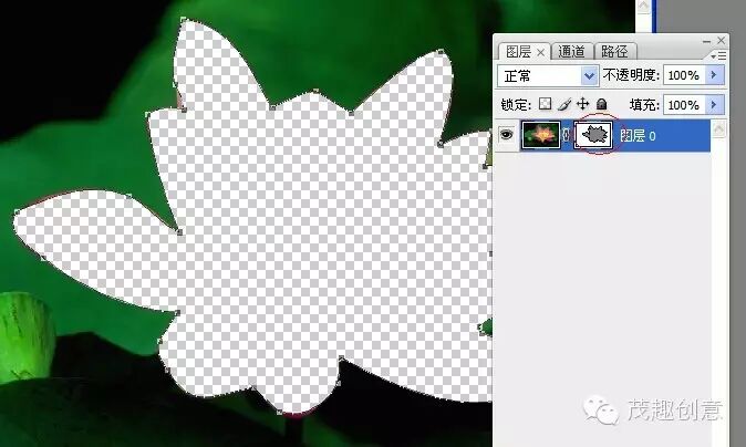 ►用钢笔工具勾勒出荷花的形状(矢量蒙版自然是跟形状和钢笔这样的矢量工具有关的)