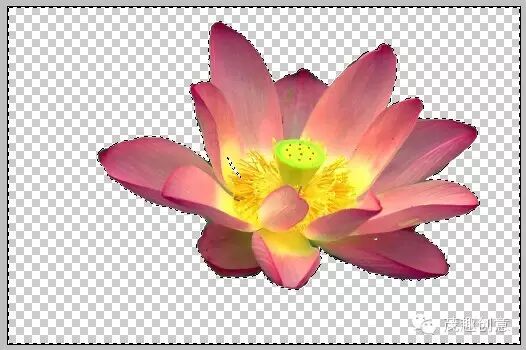 ►然后按删除键,删除背景:荷花成功扣出!