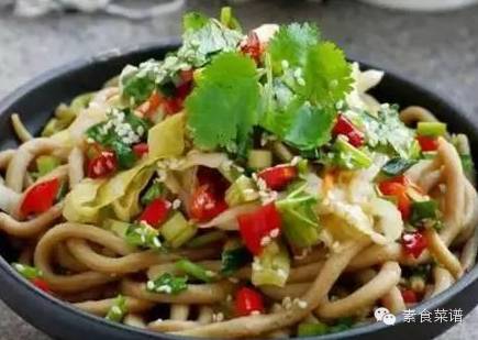 鲜蔬凉面是夏季美食。面条易于消化吸收,有改善贫血、平衡营养吸收等作用,加上各种新鲜时蔬,营养更加丰富,口感更加美妙!