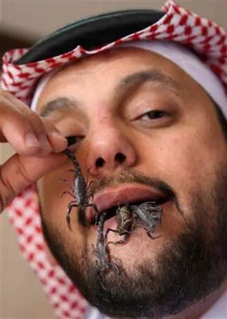 2009年1月22日,沙特阿拉伯利雅得,一沙特男子Majed Elmalk创造了一次可以吃最多只毒蝎的吉尼斯纪录。