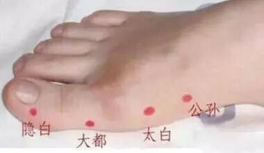 只要按么太白、商丘、太冲三穴合用=补中益气丸。