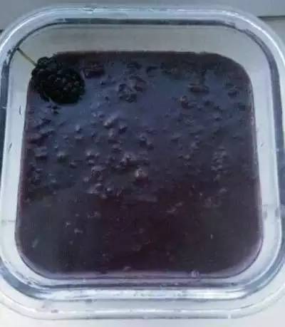 2、桑葚搅拌成泥倒入煮好的粥中煮熟