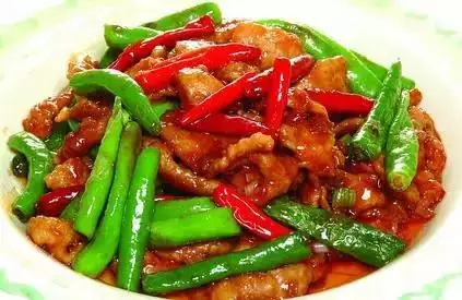 1先把肉切成二分厚的片,再改切二分五宽、八分长的斜段,用绍酒、精盐喂一会儿,再用淀粉加香油调糊浆好。