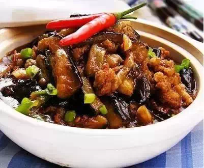 茄子两条,猪绞肉适量,香葱一条,姜末,蒜末适量,郫县红油豆瓣酱1大匙