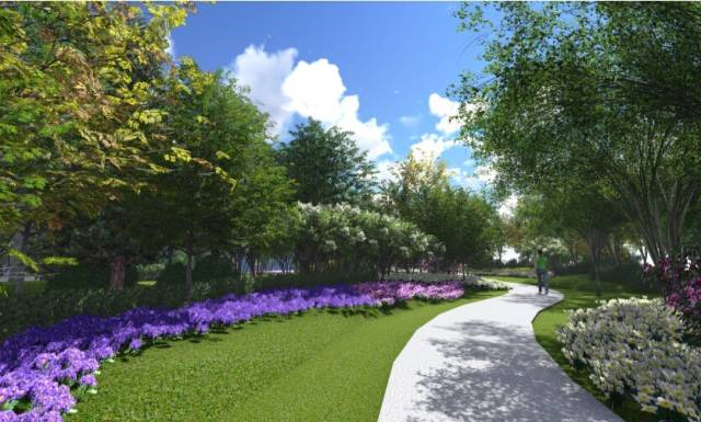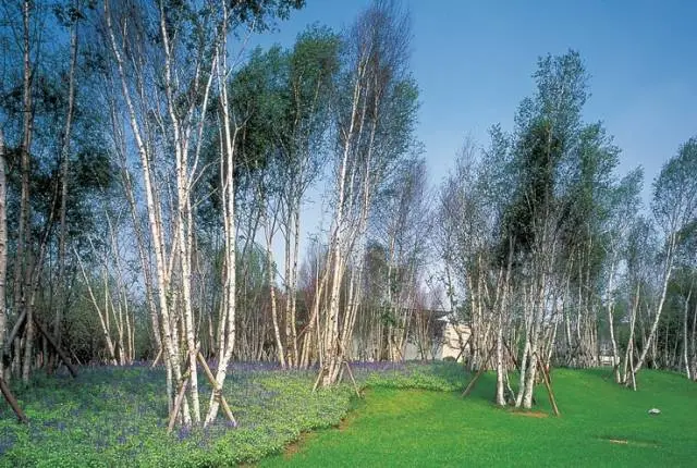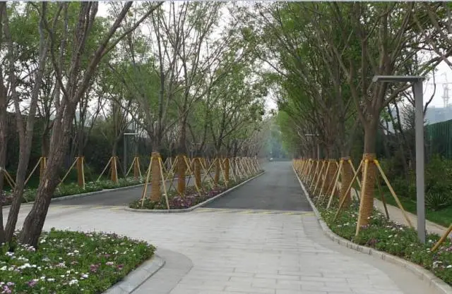 因为售楼处景观项目的特殊性,种植设计要求迅速见效。设计实践中通常使用较大规格的苗木,通过合理配置园林中各种植物,发挥它们的园林功能和观赏特性。苗木尺度注重与场地空间关系相互呼应,将具备较高观赏价值的物种,放置在重要的场地出入口位置;结合植物季相特色,让物种的色彩与周边的空间节奏相互呼应。