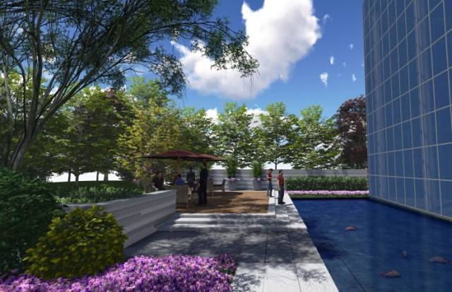 在较小的空间尺度内提供最丰富的景观感受。水景,铺地,色叶植物的使用,灯光与背景音乐的使用。运用材料、颜色、质感等细节来丰富视觉体验,满足商业产品的消费属性。
