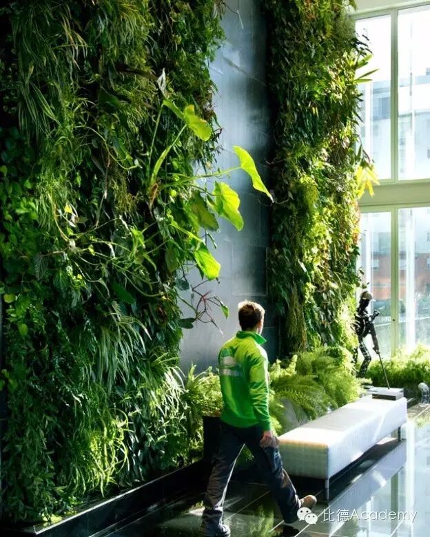 植物墙不仅能吸收空气中的有害气体,还能调节室内空气温度、湿度,其给人带来的好处是其他艺术品所不能替代的。