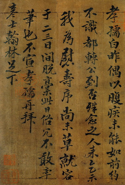 方孝孺是文章大家,今存世者有《逊志斋集》及《方正学先生集》等。此札内容为告朋友彦士未赴约之由,并询问及都转公之情况,最后言及朋友所请写之寿序文因“俗冗”心不能静而尚未脱稿。此札内容平实,言简意赅;其字气息沉厚,点画老辣,结体硕长,有大人态。古来忠烈、重臣之字,如颜真卿、翁同龢等都是此类风格。从此札中,可见其人实乃端人正士,笔笔到位,字字独立,无逢迎之态,令人奉读之如面君子。