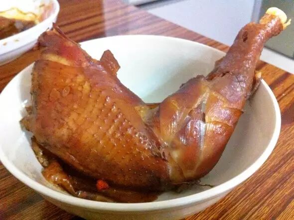 激冷的鸡腿捞出,沥干水分,在表面涂上一层香油,稍稍晾干