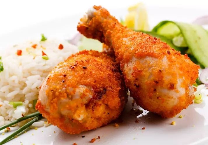 3、炒锅上火,倒入油,烧至七八成热时,将鸡腿投入炸呈金黄色,捞出装盘,撒上花椒盐即成。