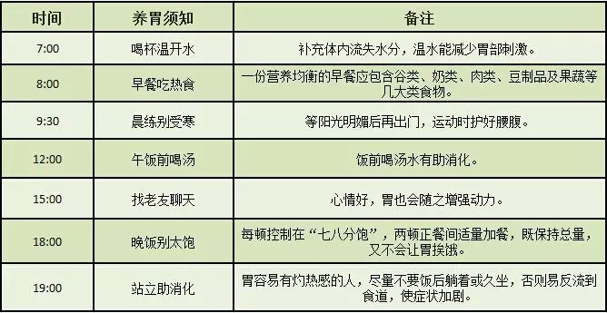 对胃不好的人而言,生活有规律尤为重要。根据临床经验总结的“养胃时刻表”,可以帮助人们不用吃药,一样养胃↓↓↓