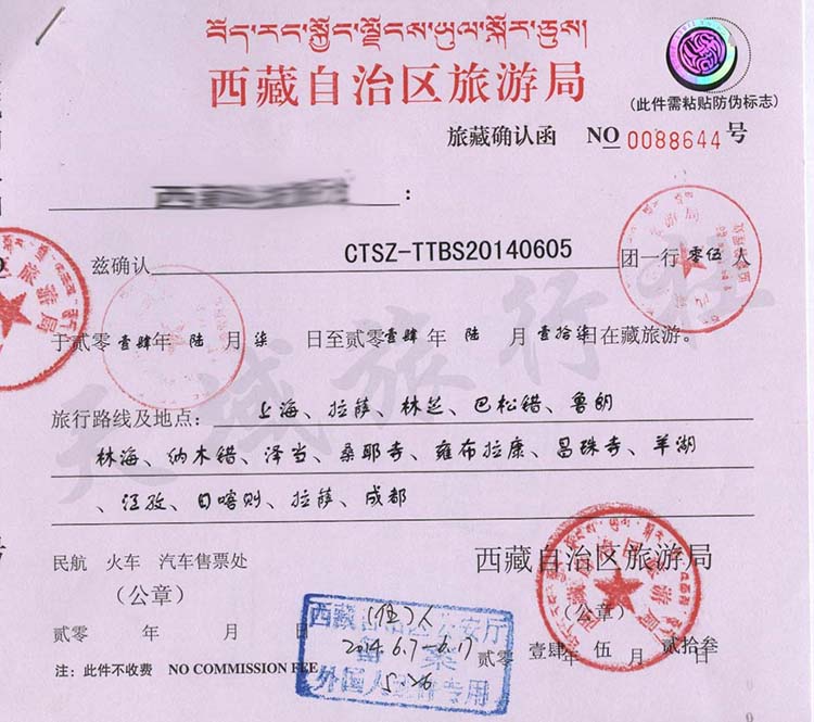找一个单位开介绍信,最好是旅行部门,而且一定要写明开介绍信的单位的领导姓名和职务。否则在买申请表的时候可能会被要求出示拉萨的暂住证。