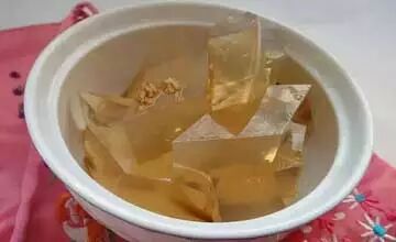 4、冷却后,即成胶冻。食前若加些香油和花生酱,风味更佳。