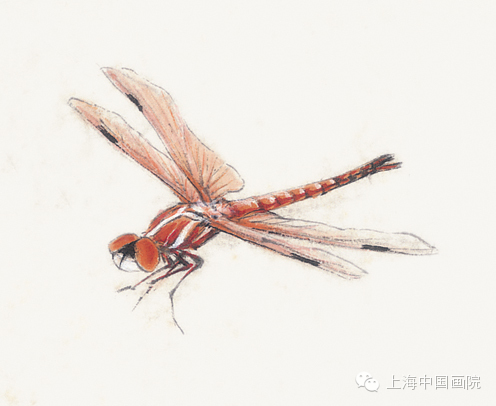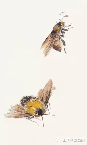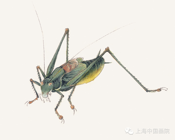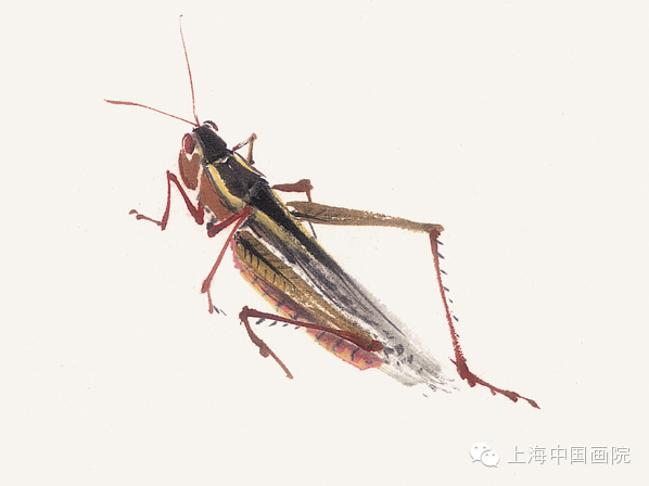 草虫一般先画头,次画胸、翅、腹,最后添须和足;而蝴蝶先画翅,再按飞翻或止息的姿态,添画身躯等部分。画足用笔最要挺健有力,画须尤宜细劲,否则缺乏神采。