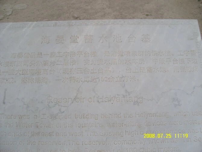 伫立“大水法”废墟前,我知道这就是历史书上那幅圆明园照片,这就是圆明园的代表性建筑了。看着站上废墟张臂留影的青年,我心里没有兴奋,而是在隐隐作痛……