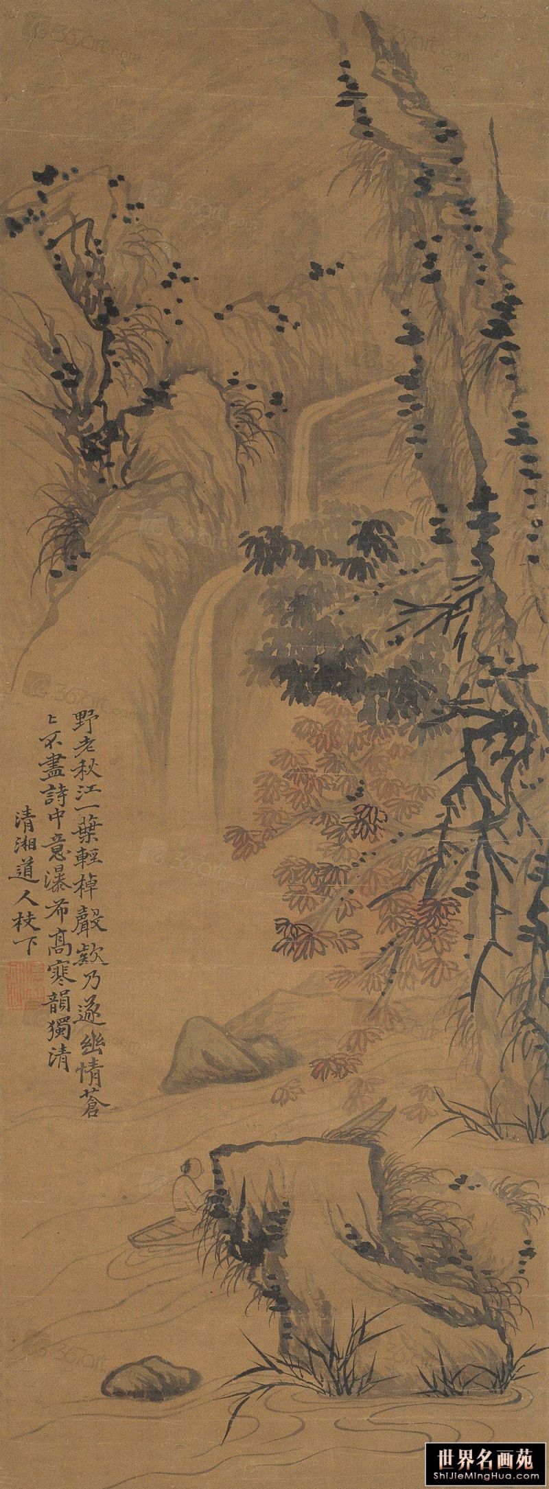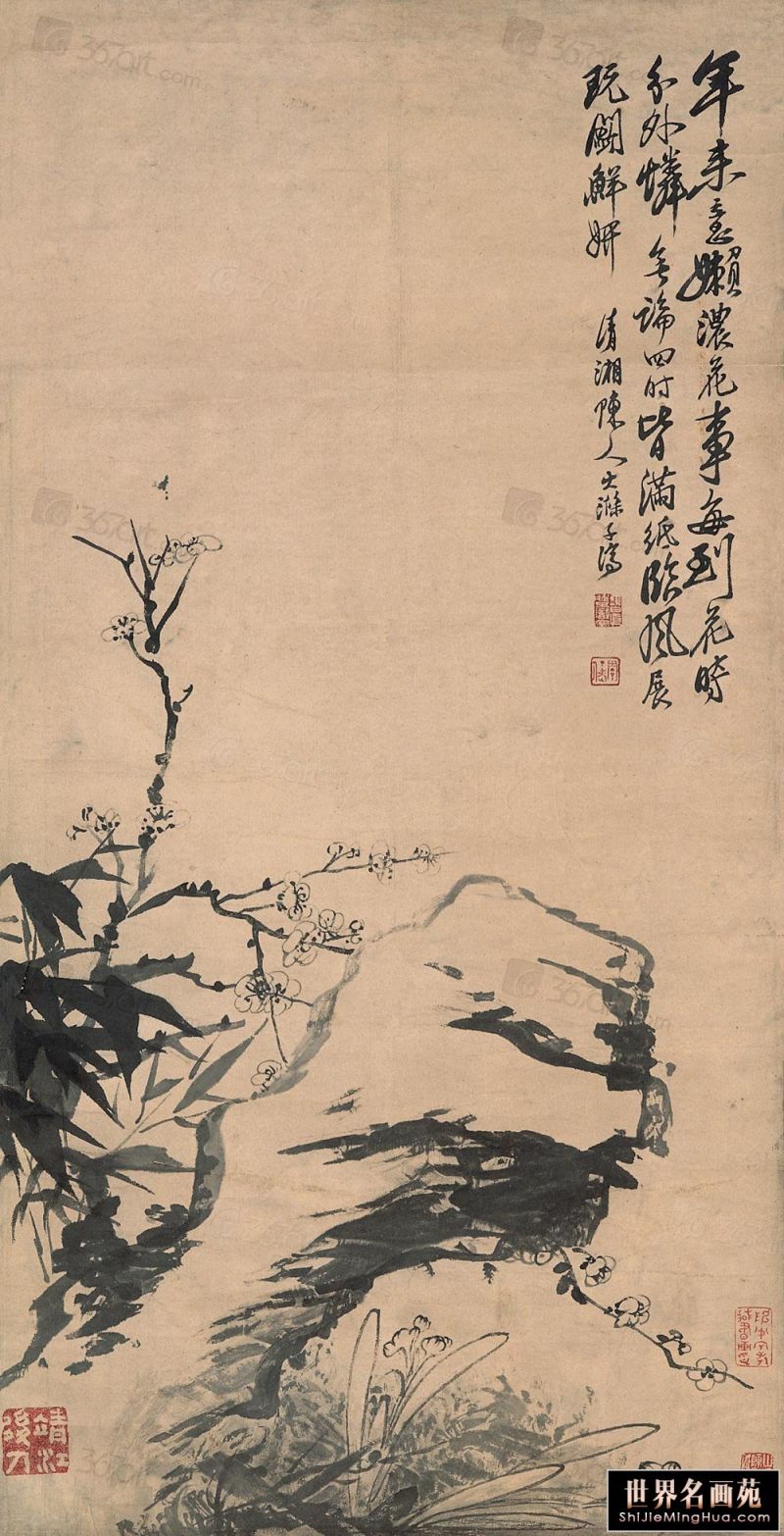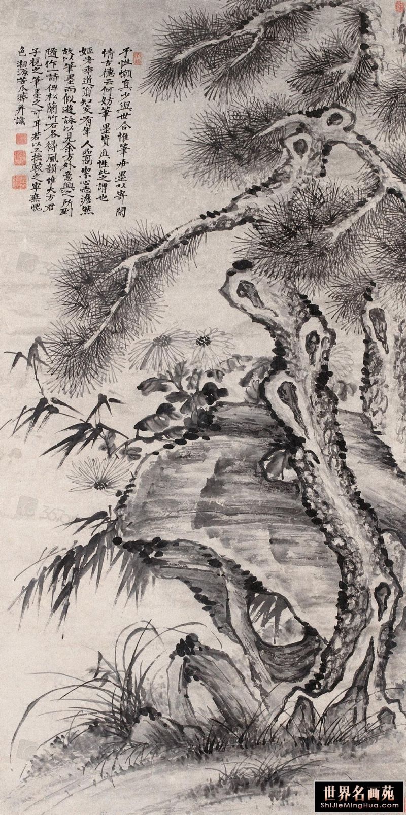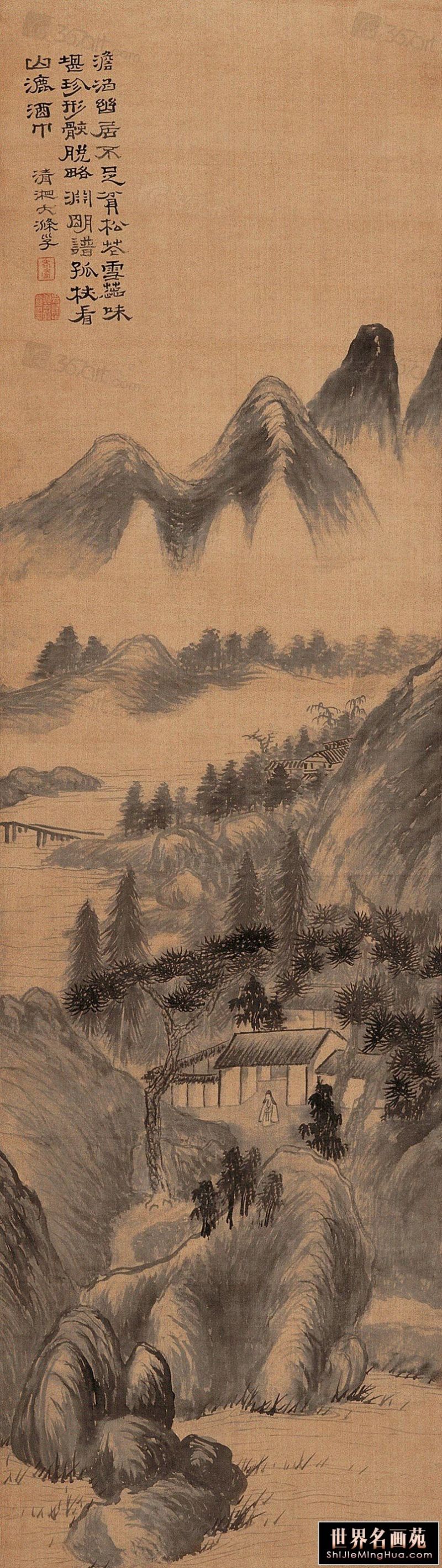 石涛(1642一约1707),清代画家、中国画一代宗师。靖江王朱守谦十世孙,法名原济,一作元济。本姓朱,名若极。字石涛,又号苦瓜和尚,、大涤子、清湘陈人等。广西全州人,晚年定居扬州。明靖江王后裔,南明元宗朱亨嘉之子。幼年遭变后出家为僧,半世云游,以卖画为业。早年山水师法宋元诸家,画风疏秀明洁,晚年用笔纵肆,墨法淋漓,格法多变,尤精册页小品;花卉潇洒隽朗,天真烂漫,清气袭人;人物生拙古朴,别具一格。工书法,能诗文。存世作品有《搜尽奇峰打草稿图》《山水清音图》《竹石图》等。著有《苦瓜和尚画语录》。名言有“”一画论‘、“搜尽奇峰打草稿”,‘笔墨当随时代’等