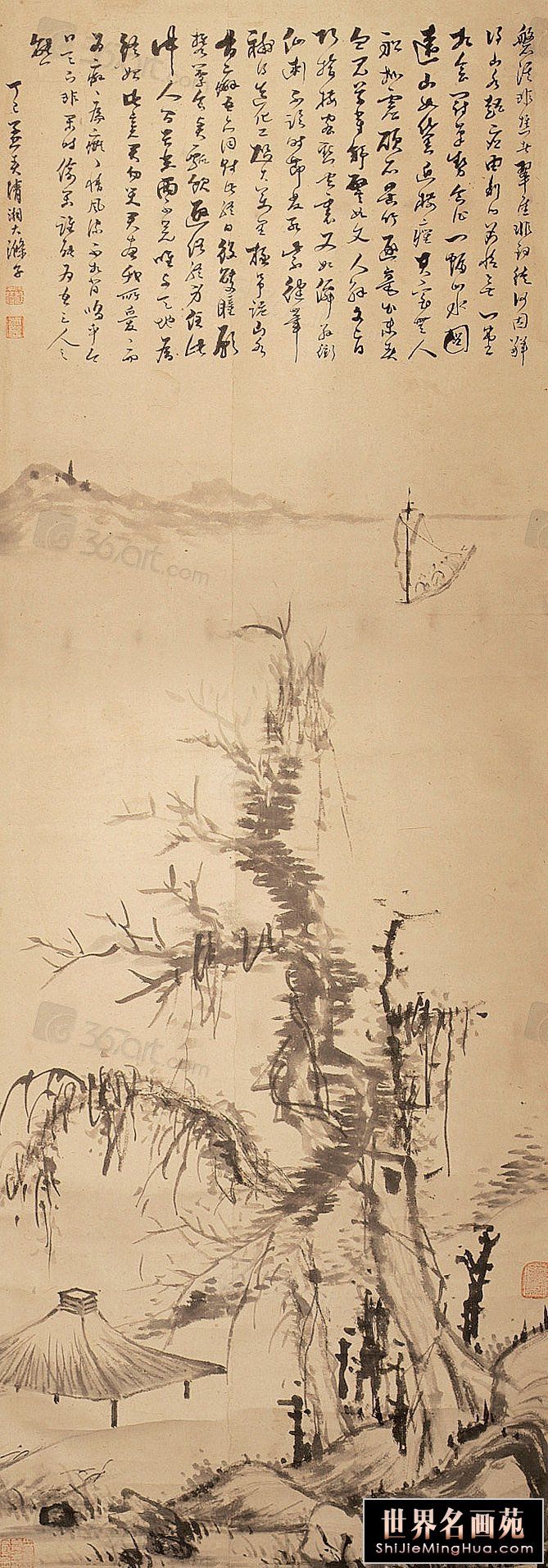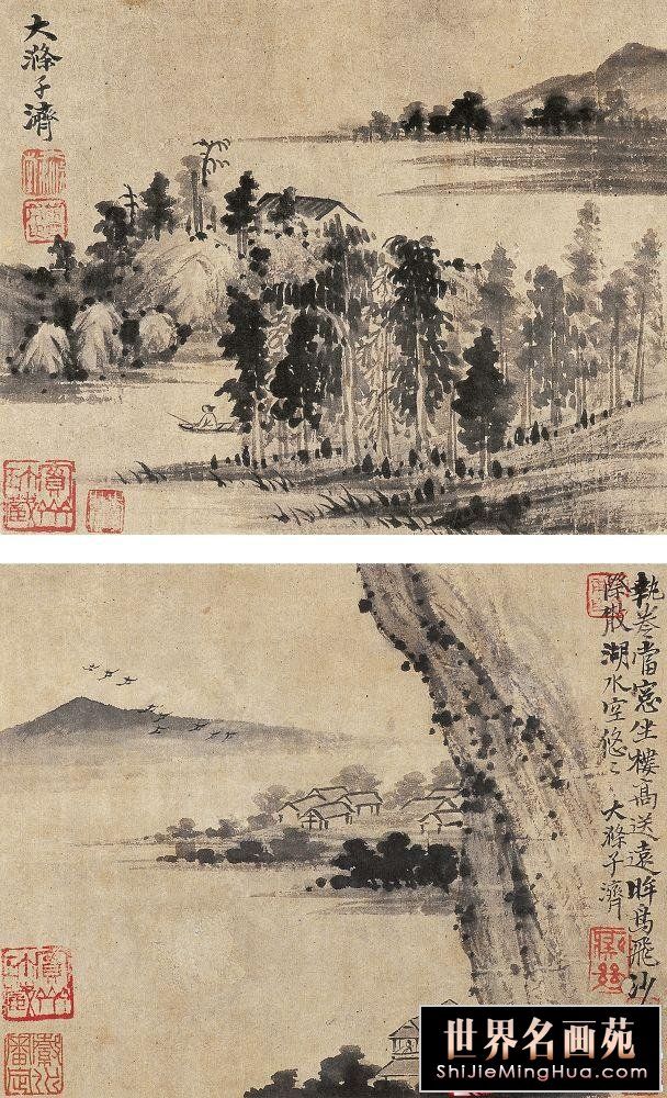 石涛号称出生于帝王胄裔,康熙南巡两度召见,读他的书与画有种“晚风轻拂”之美