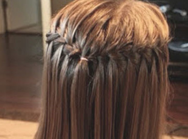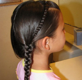 这款小女孩发型,受到很大的欢迎。头发中分,左边的头发从中缝开始编,编成一条麻花辫。
