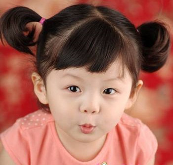 扎成两束的小辫少不了可爱的发绳,这个发型最适合脸蛋胖乎乎的小姑娘。