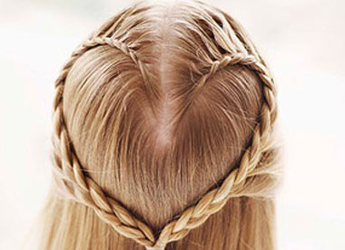 这款小女孩发型,先将头发分区,前区的头发编成小麻花辫,与后面右侧的头发合在一起编成大麻花辫。适合小家碧玉气质的小女孩,很有亲和力哦!