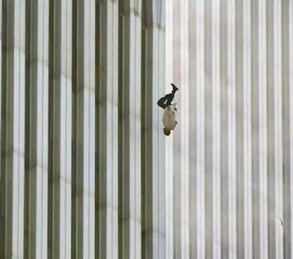 2001年9月11日发生的惨剧考验着人类的精神和勇气。这张照片中坠落身亡的人是那天上百名从世贸中心跳下的人之一。这照片最初激起了义愤——人们指责这是对死亡的无礼。摄影师表示:“我并没有拍摄这个人的死亡。我拍摄的是他生命的一部分。”对大多数人来说,这张照片将永远与9·11紧紧联系在一起。
