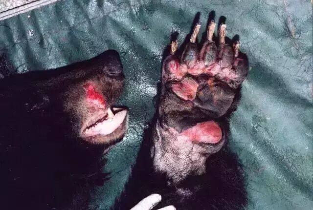 穿着铁马甲被抽胆的熊,铁马甲都腐烂了,不知道已经抽了多少年 。