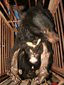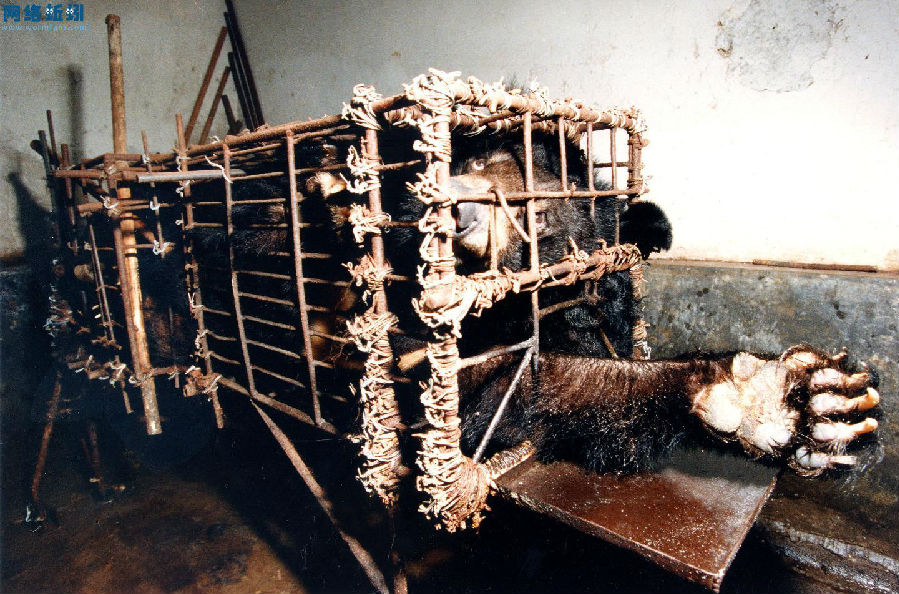 怕胆汁乱流,穿着钢背心的黑熊大多只能一个姿势站在铁笼里。除了头能自由摆动外,身子已不能活动。 每头被取胆的黑熊,都瘦骨嶙峋,它们唯一的动作是拼命摇头。 如果您不忍心,请慈悲的您,动动手指转载一下,就是大放生!让更多的人看到,就可以救许多生命!大家都是热爱和平的人,请帮帮这些可怜的动物朋友吧!