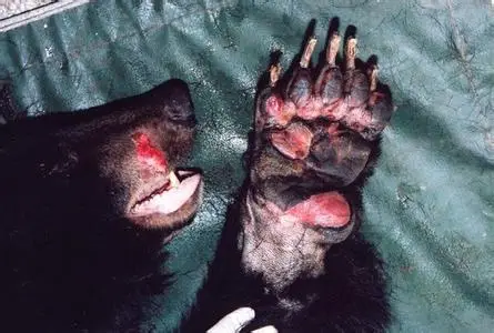 此时,我才明白,夜里那些悲叫是这些带着伤痛的熊,在难挨的暮色里发出的呻吟啊。老张跟我到门口,我声音颤抖的质问他:“你们还有人性吗?它们可都是生命啊!”老张淡淡地说道:“没办法,我们干的就是这样的活啊。”情绪稍定,我无奈地问他:“多长时间采一次胆汁?”他回答道:“那要看情况了,胆汁多的一天两次,少的最迟两天要一次,一般一个熊年产胆粉2000克,可以采10年。”我的心战栗了,一天两次,10年,这是个什么样的魔鬼数字啊,也就是说,这样欲死的折磨每天都要进行两次,要在这样欲生不能的刑法里忍受10年,7200次剜心剔骨啊。要日复一日,年复一年的熬啊,纵是人的坚强生命力,也肯定难以坚持下来,我的心痛痛的。