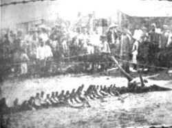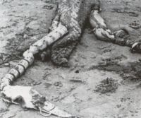 出于恐惧,他们首先试图将其溺死。他们这样尝试了三次才成功。第三次他们将这个生物溺入水中长达数小时之久