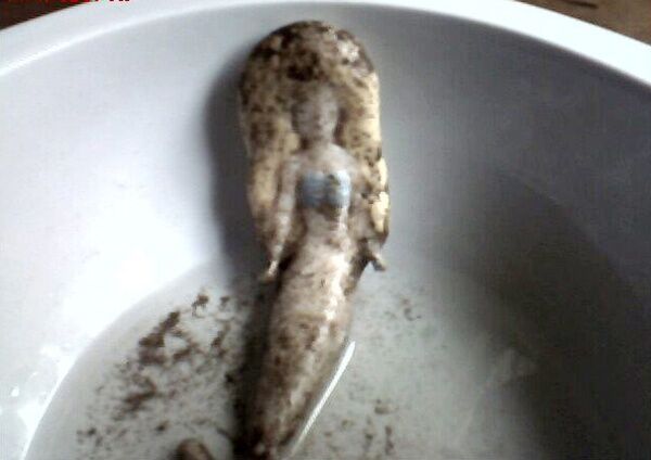 山东一村民家发现的【奇怪生物】,全长14.8厘米,胸宽3.8厘米。据村民马讲,他是前天下午在自家院里墙角的砖缝里发现的。刚刚发现它时,它的尾部还能自主摆动,而且身体上还有粘液,至今未解是什么(= = 以前看过一期走进科学好像就讲的这个,= = 好像答案是至今未解吧,当时专家什么的猜测是菌类还是什么的,不过这个推测还是被推翻了)
