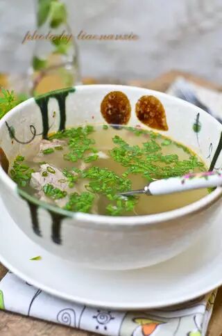 6、煮好的肉肉,将牛肉切片摆盘,配上辣椒油,上桌吧。辣椒油需要加生抽葱花盐调整味道。(这菜的图图丢了几张,关健也就是煮牛肉这一部分,煮好之后随意调整味道,都很好吃)这是牛肉汤,也很棒。