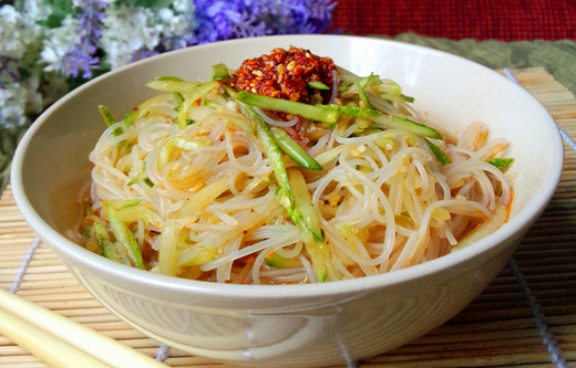 粉丝 2小捆、黄瓜 1根、姜 2片、蒜 2瓣、酱油 1勺、白醋 1勺、香油 1勺、花椒油 1勺、辣椒油 1勺、白糖 1勺