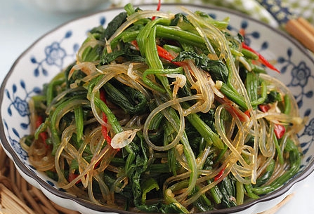 菠菜 500克、粉丝 1小把、红尖椒 1个、虾皮 1把、生抽 1/2汤匙、醋 1/2汤匙、香油 少许、小葱 2根、蒜 2瓣、白糖 1/2茶匙、食盐 1茶匙、干辣椒 5个、植物油 1汤匙