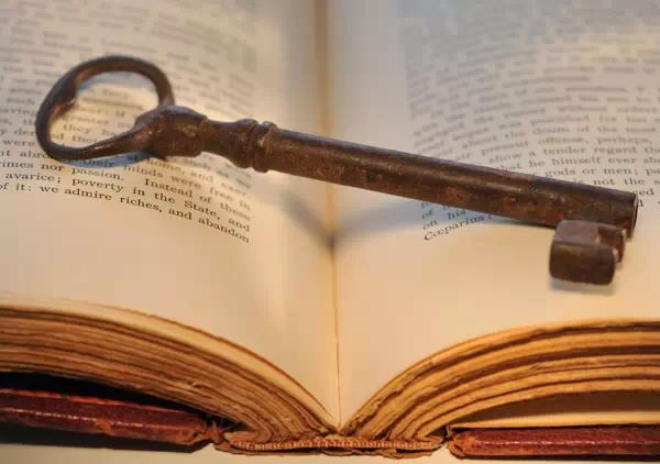 10、一把坚实的大锁挂在大门上,一根铁杆费了九牛二虎之力,还是无法将它撬开。钥匙来了,他瘦小的身子钻进锁孔,只轻轻一转,大锁就“啪”地一声打开了。