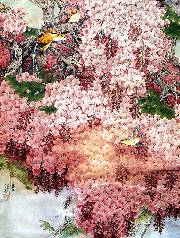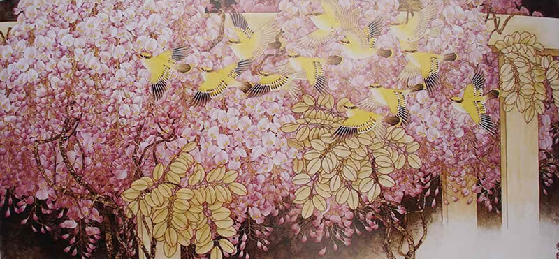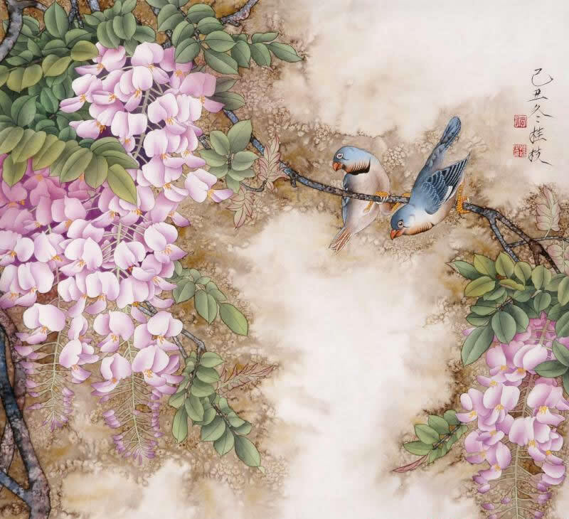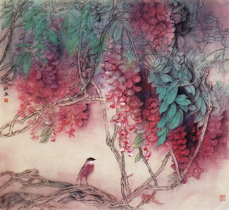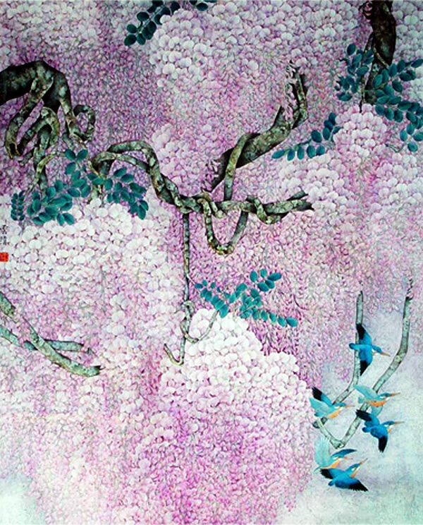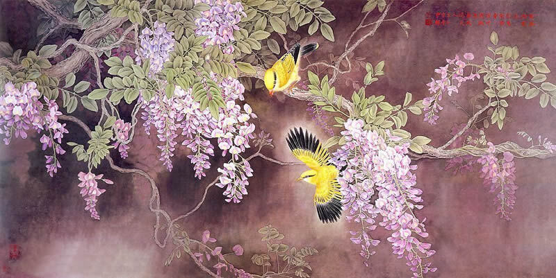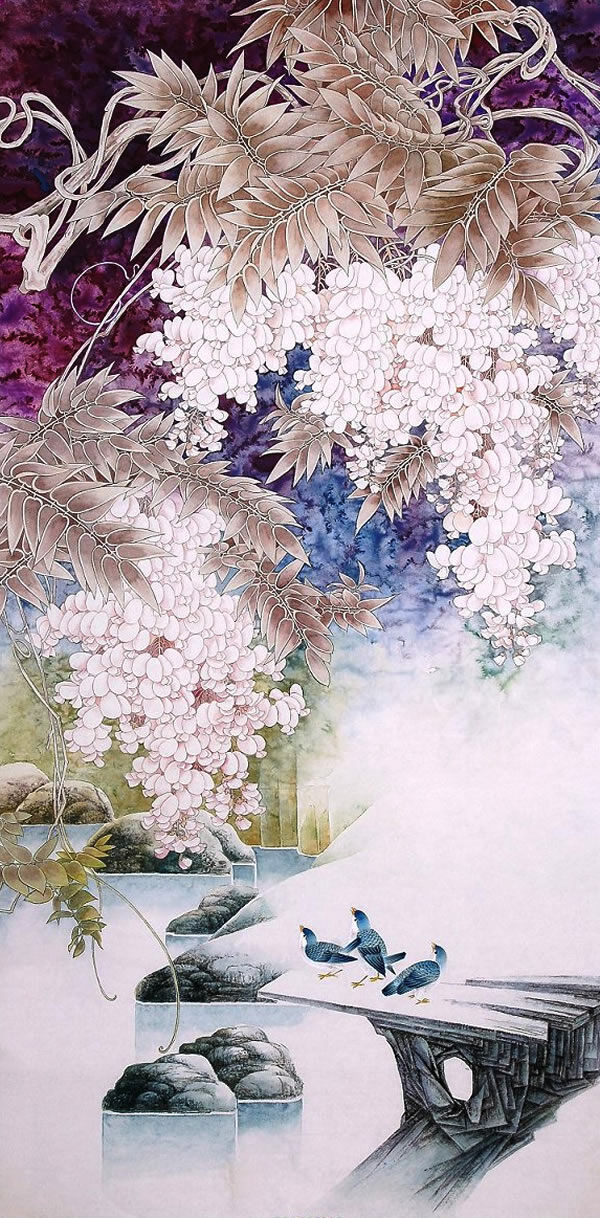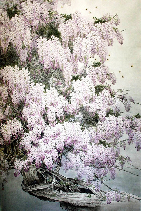 精品国画欣赏-名家画笔下的《缠绵紫藤》
