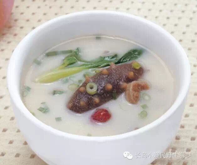 菜品特点:汤汁清淡,海参形态完整,口感筋道,口味独特。