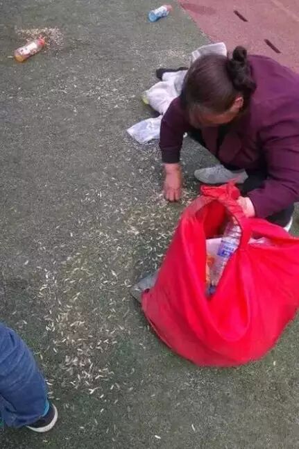 看了很心酸,请大家不要在足球场等公共场所嗑瓜子,笤帚很难扫起瓜子壳,清洁阿姨用手捡不容易......