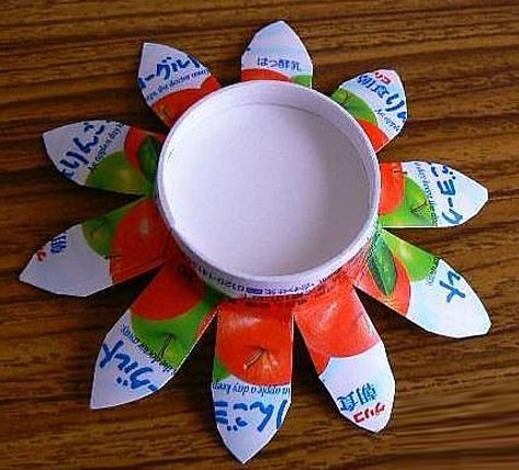 Step.7剩余部分如第一个酸奶盒的剪法,剪得更开一些