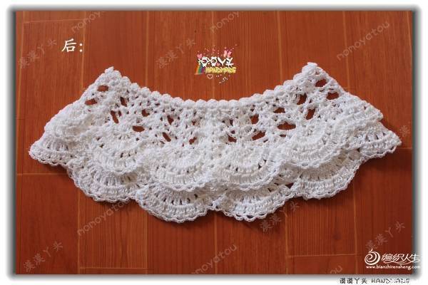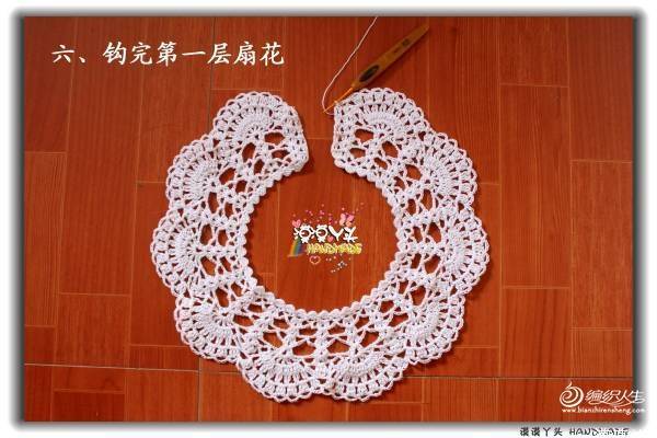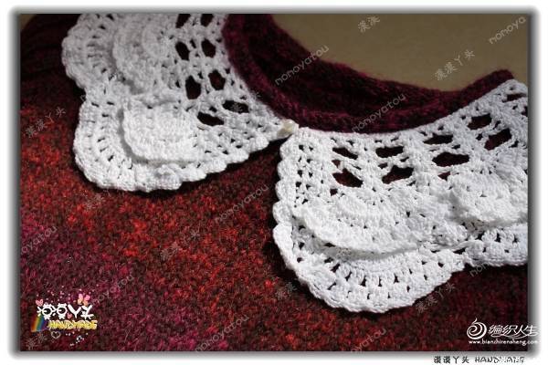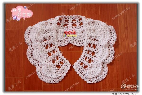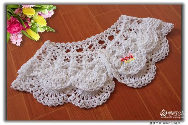 蕾丝的材质,稍稍硬挺有型,双层扇花层可爱精致,任意搭配外套、毛衣、裙子、T恤都很出彩;儿童成人都能使用,套句广告语:宝宝用好,您用也好!这个领圈我钩了不下十条,简单方便还漂亮,送人更是不二的选择呢,哈!