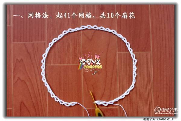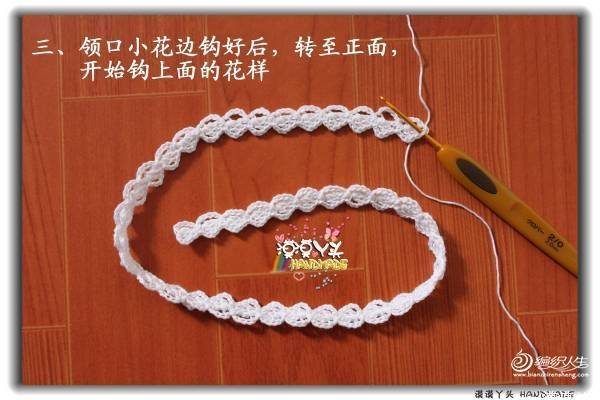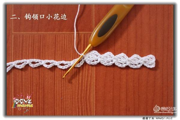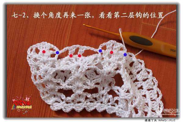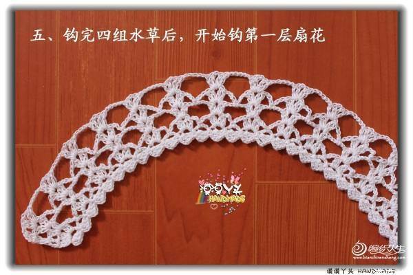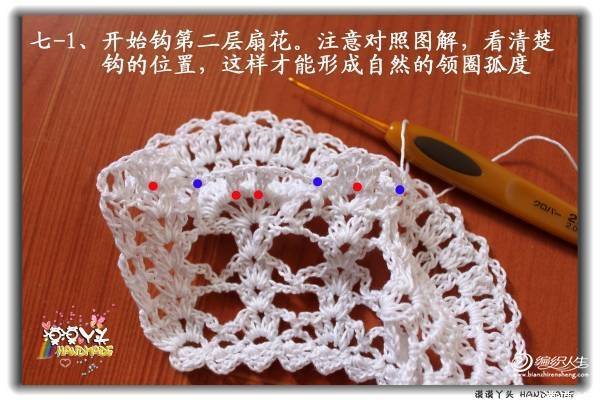 【朴谷.紫蝶】这个小飞袖蕾丝花边的扇花层钩法和双层领是一样的: