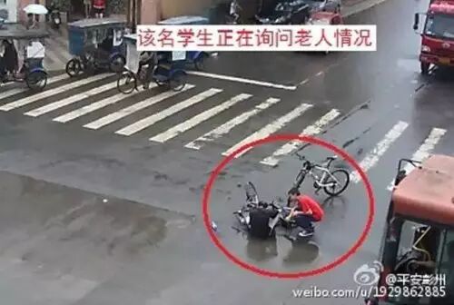 近日,四川彭州一老人骑自行车过马路时,在一路口不慎摔倒。而后一名骑着自行车路过的学生停车,热心地问候伤情。不过,该学生却遭到老人的诬陷,称是学生将其撞倒。好在调取监控画面后,学生被证明了清白。随后警方对老人进行了教育。