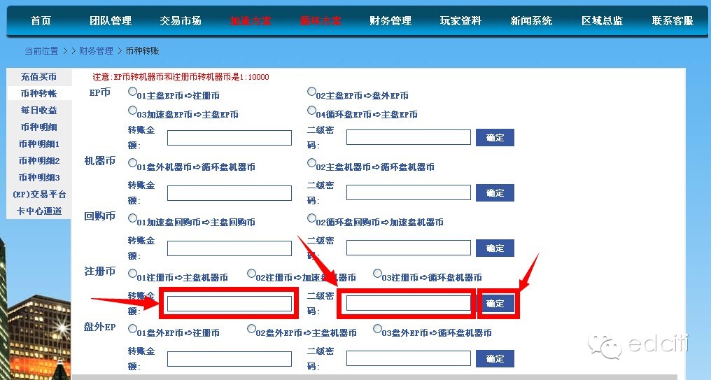 第四步:输入转账金额 ➪ 二级密码 ➪ 确定