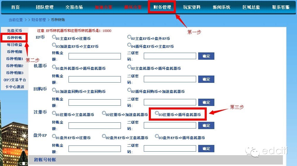 卡中心收款后会及时确认已收款,这时EP会自动进入到你的帐号,到达你的注册币帐号里面;