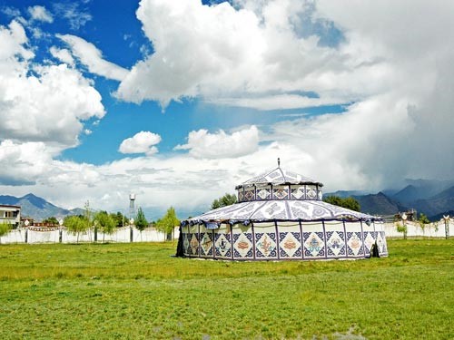 望一眼珠穆朗玛,感悟就会融化激情;闻一缕桑烟香,佛心就会感悟得升华;听一声颂经,神秘就会沁入你的每一根神经,奔腾不止;跳一圈锅庄舞,洁白的帐篷就为你敞开