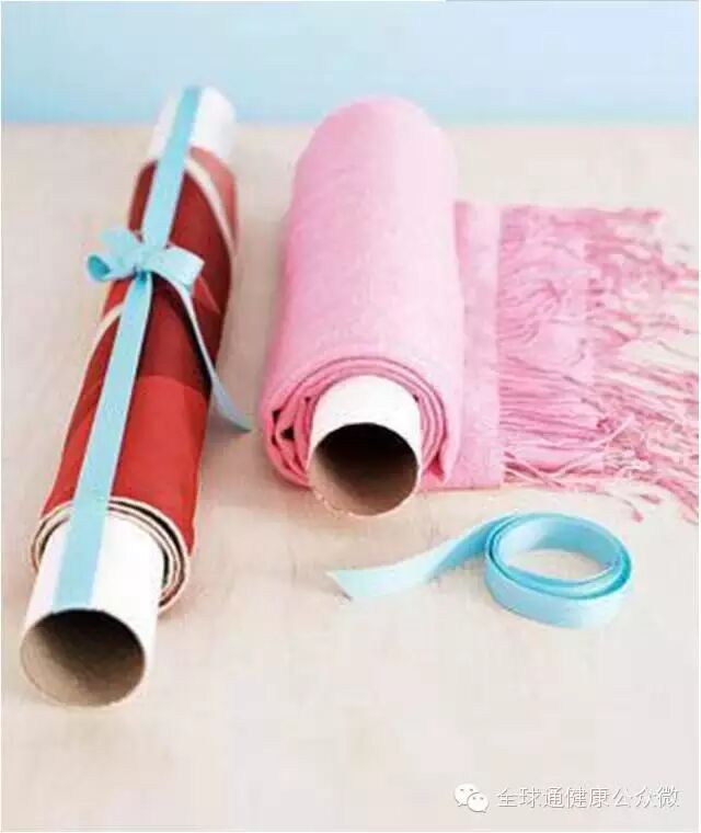 卷纸芯和保鲜袋芯的妙用,围巾这样保存带的时候没褶子,还省去衣挂钱。