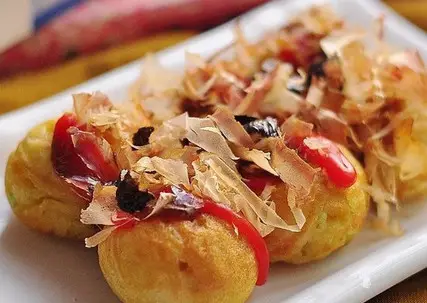 13、按口味挤上沙拉酱,番茄酱,章鱼烧酱。